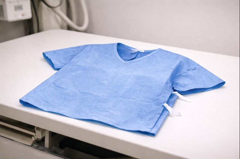 診察室に呼ばれ、転んだ状況を説明します。 「じゃあレントゲンね」と言われ、紙のように薄い青いレントゲン用のTシャツを着せられました。