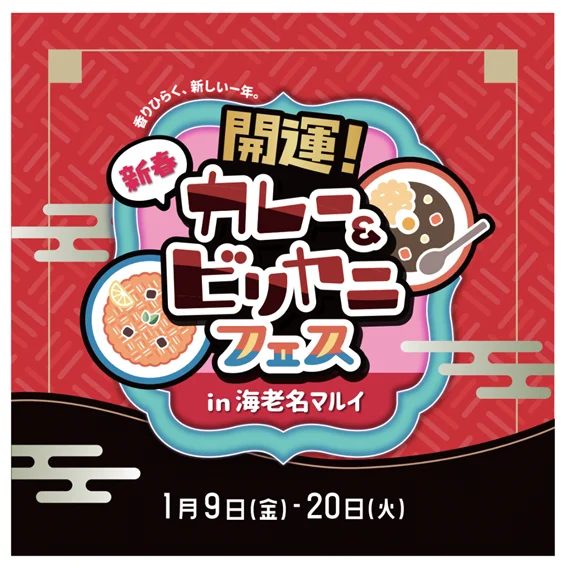 「開運!新春カレー&ビリヤニフェス」は、2026年1月に神奈川県・海老名マルイ1階イベントスペースで開催されるカレー&ビリヤニの合同フェスです。全国的に人気のある店舗や注目の出店が一堂に会し、新年を華やかに彩るスパイス料理を楽しめる企画として計画されています。