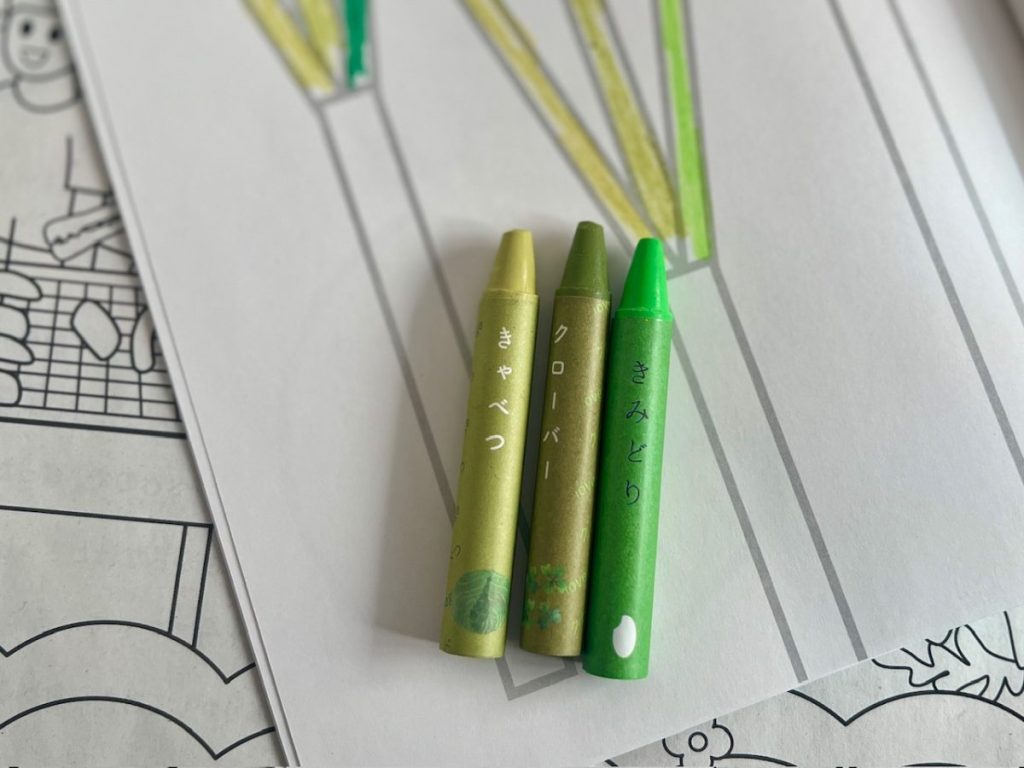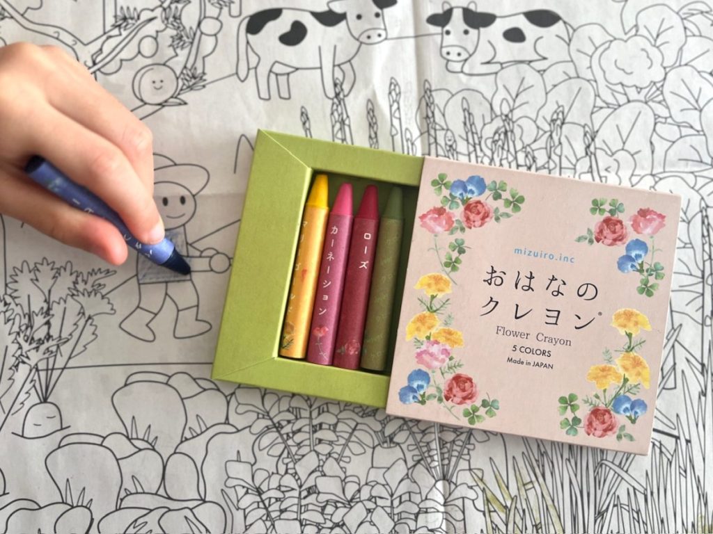 「おやさいクレヨン」も「おはなのクレヨン」も色の薄さを懸念される方もいるかと思いますが、やさしい色合いという印象で、薄いとは感じませんでした。色鉛筆のように重ね塗りも美しく、お洒落に仕上がります。