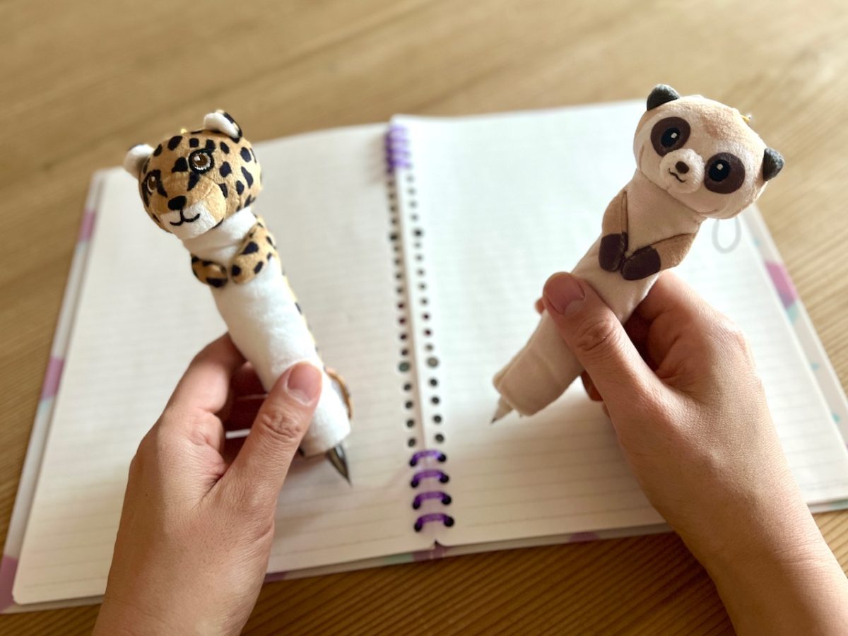 ぬいぐるみ素材の「ポーズーペングリップ」をペンに取り付けることで、手汗によるペンの滑りを防ぎ、柔らかい握り心地で指への負担を軽減。また、ペンに適度な太さが加わることで、長時間の筆記でも疲れにくくなります。かわいいデザインで学習に対する意欲もアップしそう! 付属のストラップで、鞄やペンケースにキーホルダーのように取り付けて持ち運ぶことが可能です。