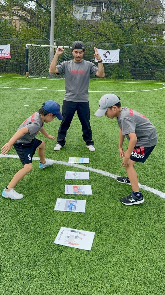 バイリンガルの日本人コーチと外国人コーチが日本語を使わずに関わるため、子どもたちはサッカーの動きと結びつけながら自然に英語を吸収していきます。「楽しい!」という気持ちがそのままアウトプットの原動力になり、遊びの延長で英語が身に付いていくのが大きな魅力です。