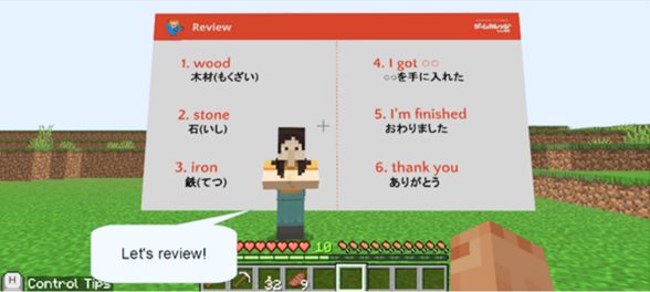 また、マイクラ内で英語に触れられる宿題つきで、授業後も楽しく復習できます。