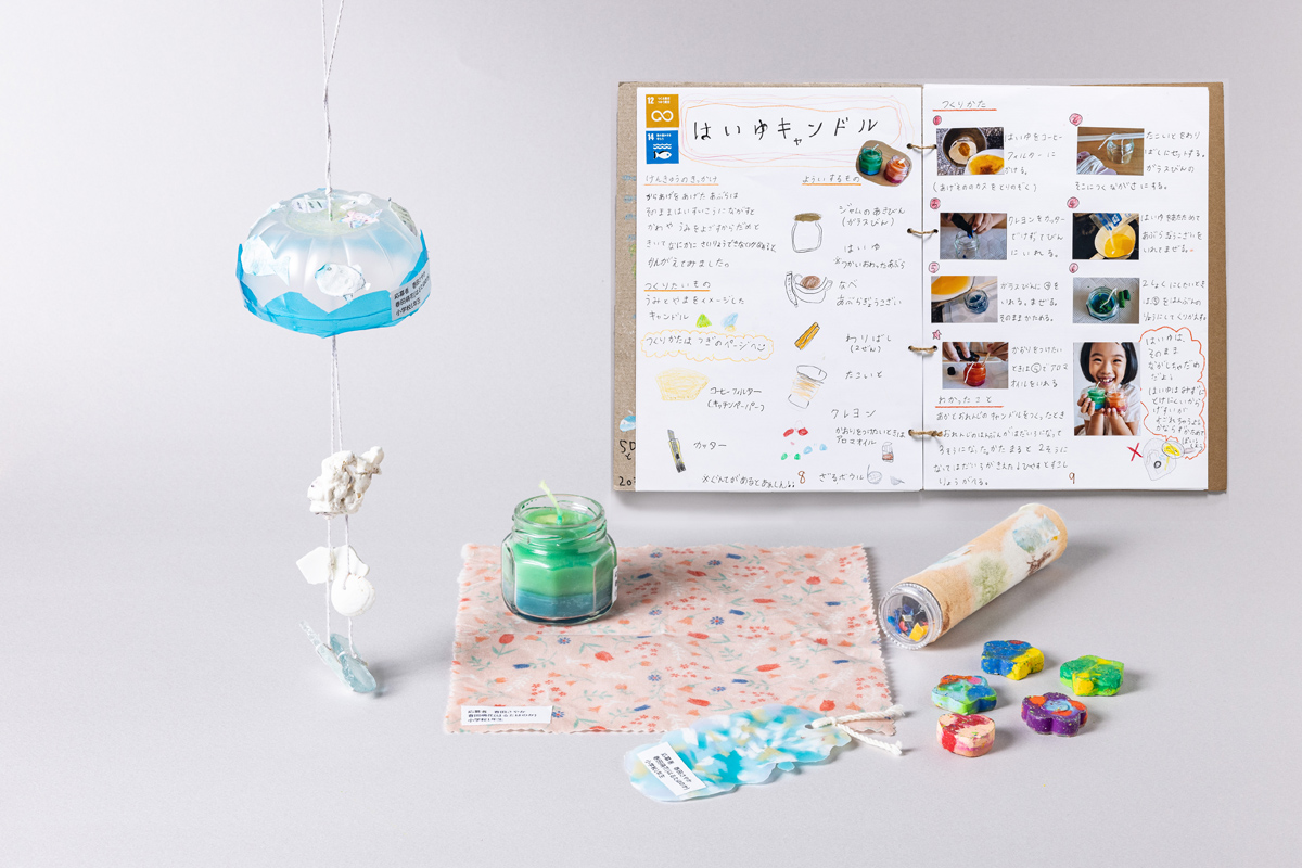 家で育てているハーブの元気がなくて、地球温暖化で暑すぎるからかな? と、おうちで環境に良いことをしてみようとSDGsをテーマにした萌花さん。廃油キャンドル、廃棄野菜で作った野菜絵の具、マイクロプラスチック万華鏡など、8種類の製作をしてSDGsの作品集のように。 過程をまとめたノートと作品、両方見応えがありました。