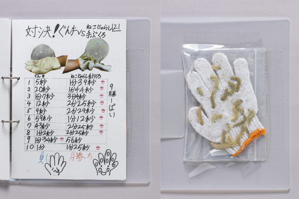 シャボン玉は、手や地面に触れると割れるけど、草や花などにつくと割れないため、草や花に秘密があると思っためぐ実さん。いろいろな素材(人工物、植物)、ぬれている・いないなど、さまざまな条件で実験し理由を探りました。さらに実験からわかったことをもとに、シャボン玉をまん丸の形でキャッチするためのオリジナル手袋を発明!