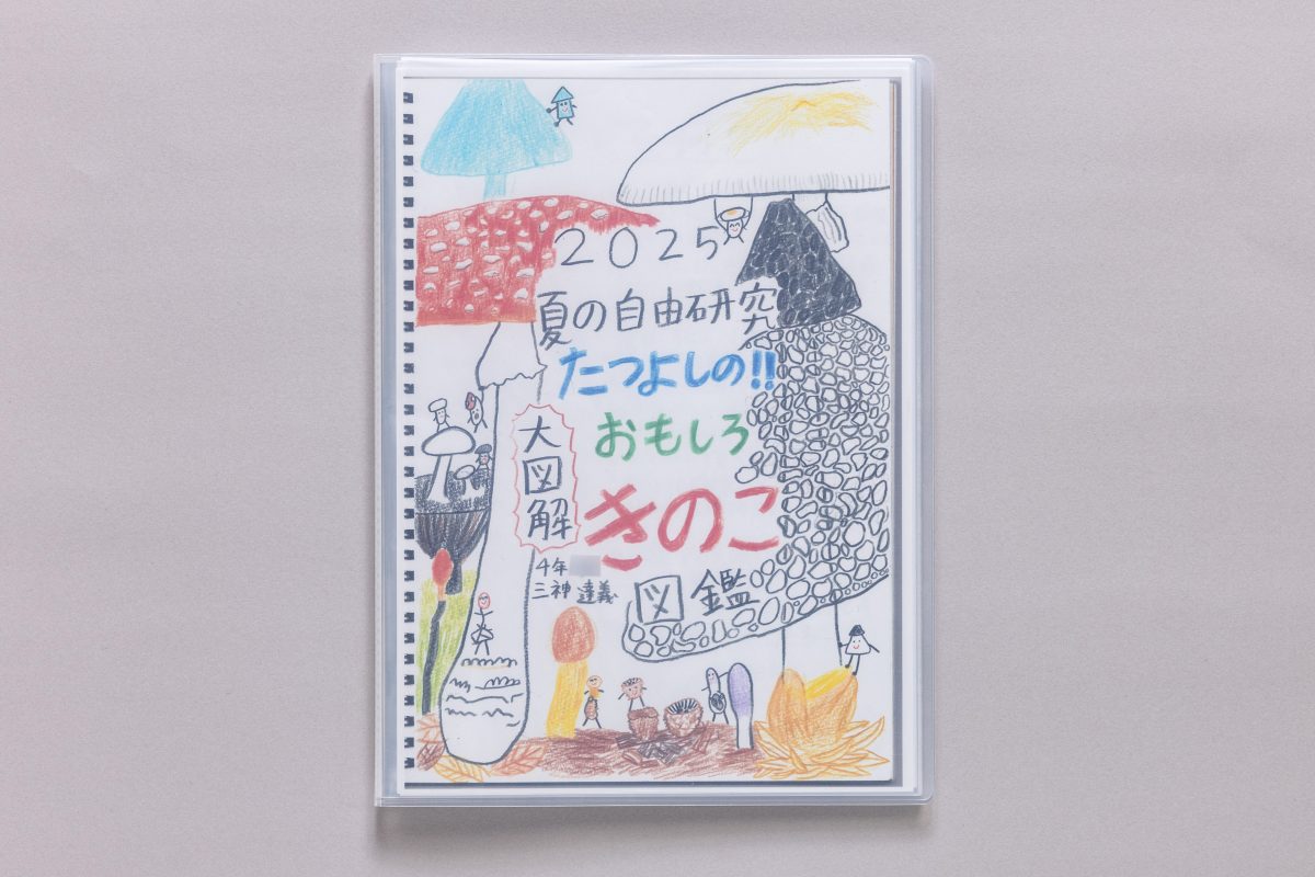 4歳の頃からきのこが大好きで、毎年きのこに関する自由研究を作ってる達義さん。今回は、今まで見つけたきのこを紹介し、おもしろさを伝えようと図鑑にまとめてくれました。たくさんの人に楽しく読んでもらえるように、絵やまんがを入れたり、きのこを見て感じたことや触った感触を書いたりして、独自の図鑑を作り上げました。
