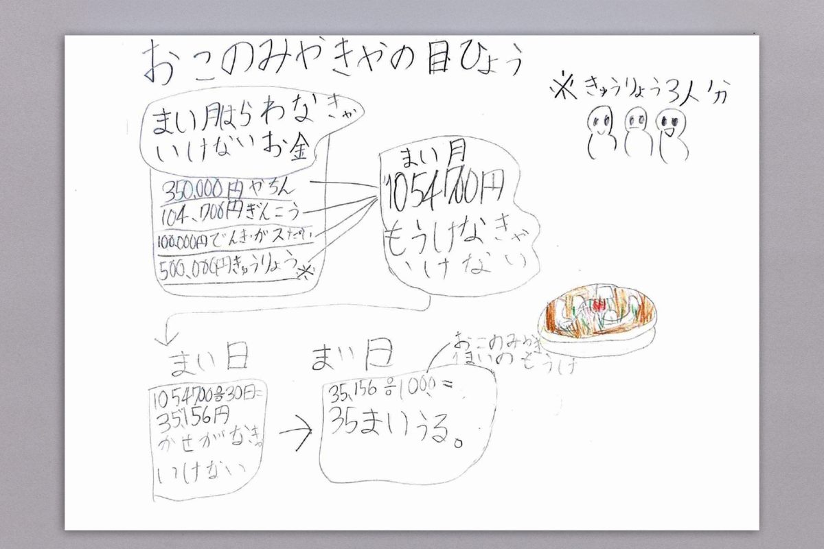 七緒さんは大阪に行ったときにお好み焼きを食べたら、「どうやってお店をやっているんだろう」と疑問を覚えたといいます。そこから単にネットで調べるだけではなく、実際にお店や市場に行って研究をし、開店シミュレーションを作成。2年生とは思えないほど立派な作品を完成させました。
