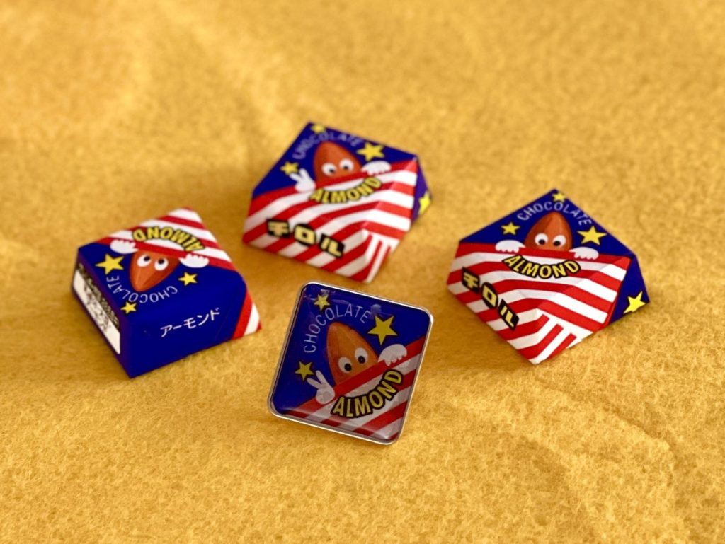 今回、100個に1個しか出ないというレアなピースサインの「アーモンド」の「チロルチョコ」を特別に用意してもらいました。もし、レアなピースが出たら、ピンバッジなどにして大切に保存してくださいね!