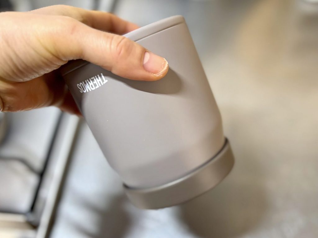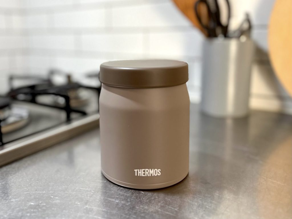 『サーモス』の「真空断熱スープジャー JEF-300」(税込3,630円 ※公式オンラインショップ価格)。落ち着いたグレージュ。