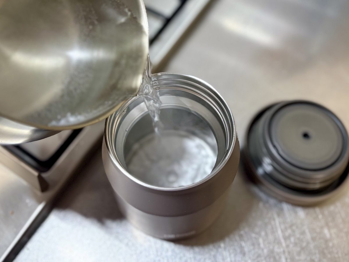 スープジャーは予熱・予冷も重要です。温かいお弁当にする場合は、中身を入れる前に沸騰したお湯を入れて保温します。冷たい場合は、氷水や氷などで保冷を。