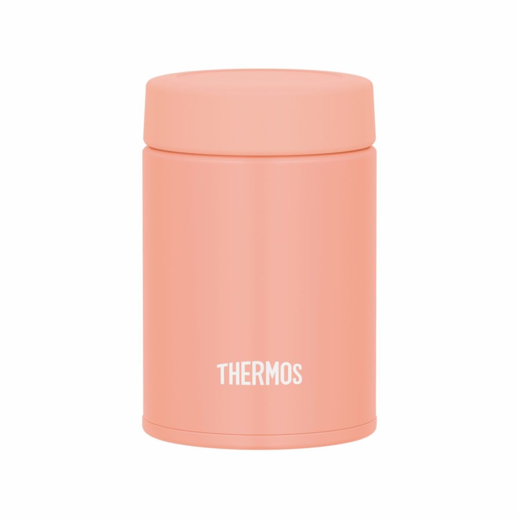 真空断熱スープジャー JEG-200 コーラルピンク(税込3,080円 ※公式オンラインショップ価格)。ライトグリーン、ナイトグレーもラインナップ。