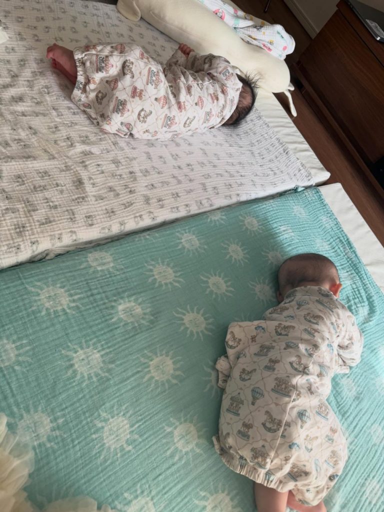 弟くんが寝返りを始め、2人で同時に黄昏泣き…腕が8本欲しい!
