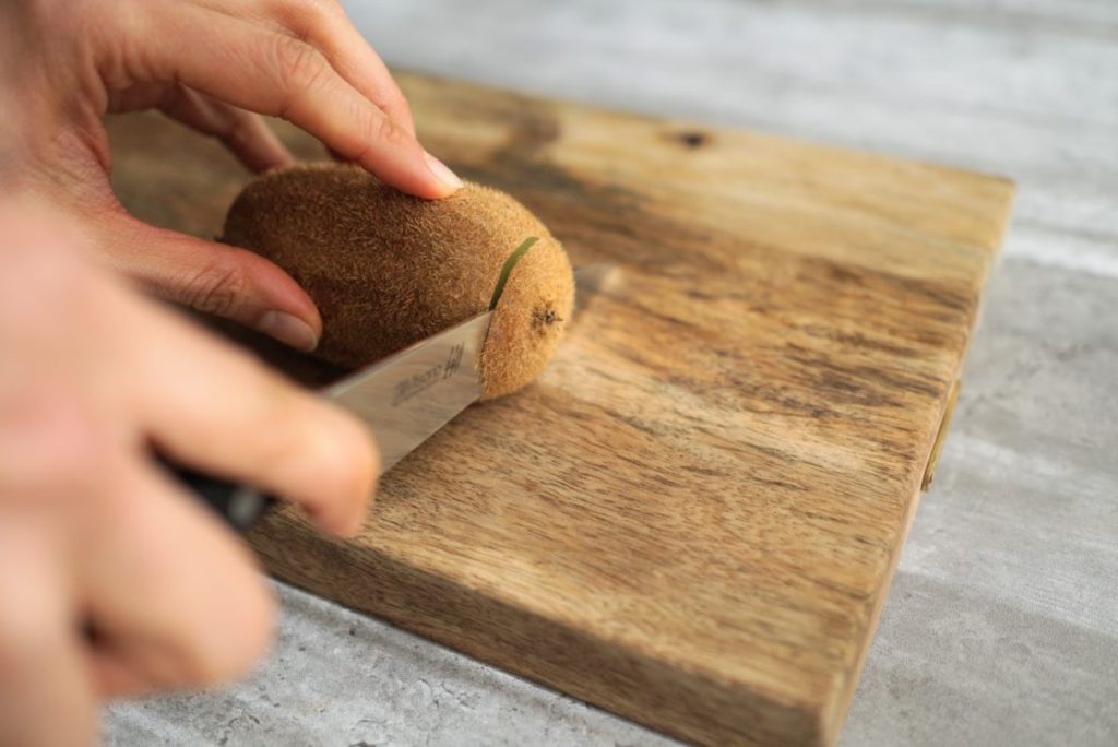 1. キウイのヘタとおしりを切り落とします