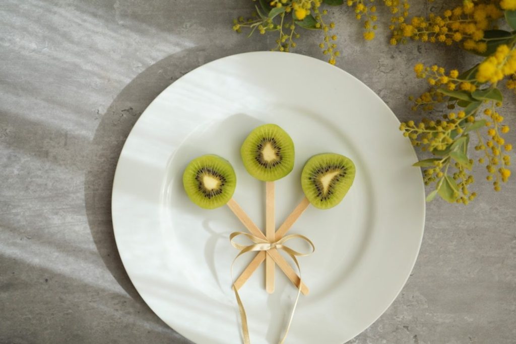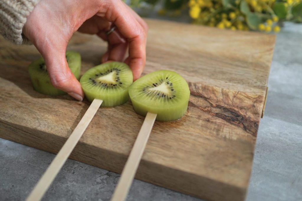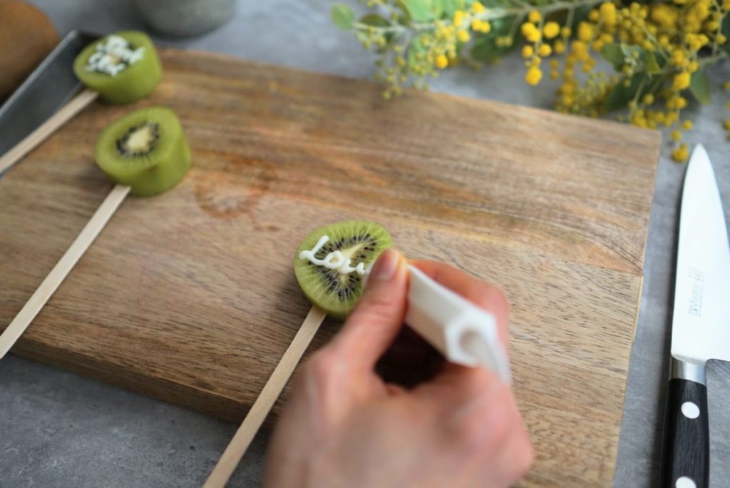 キウイを切って、スティックを刺したら、いよいよ仕上げの時間です。