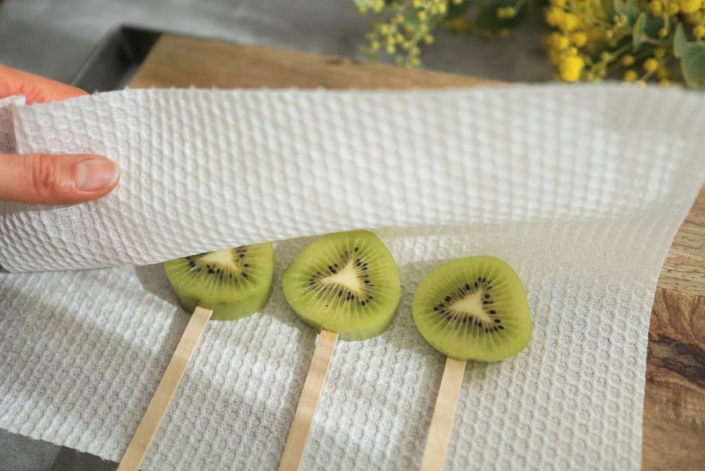 1.ペーパーでキウイ表面の余分な水分をそっと押さえます