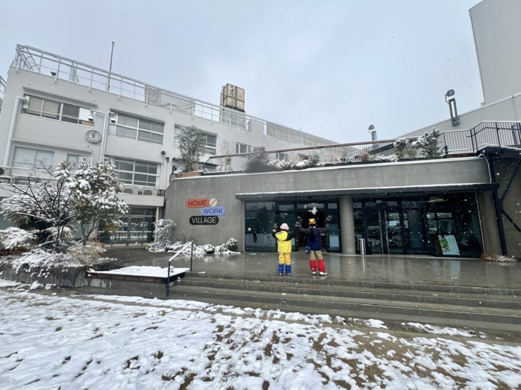 「コドモデパート」は、2月の2日間の開催のうち、すでに前日で想定していた100人が来場。我が家が訪れたのは2日目で、大雪の日にも関わらず、たくさんの人で賑わっていました。廃校跡の広場では雪遊びも楽しめて、最高の開催場所でした。