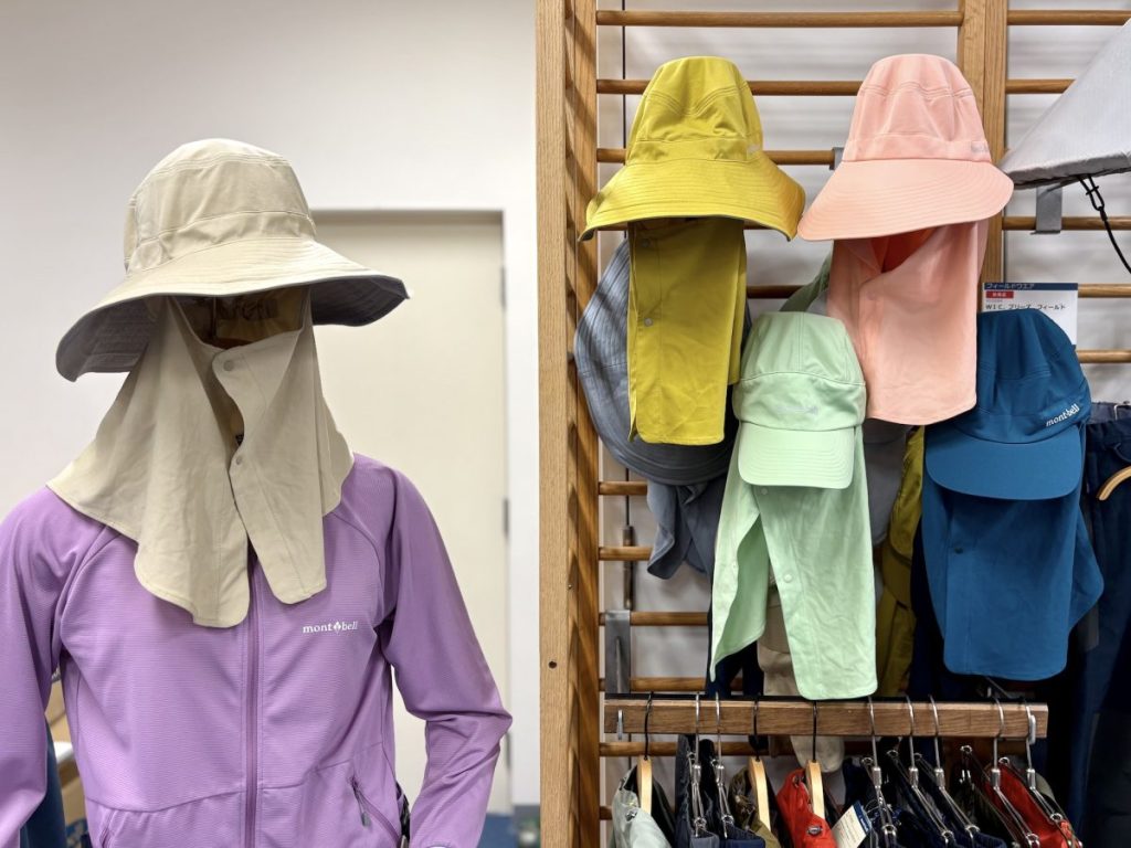 こちらは昨年発売した農作業用の帽子で、やはり大ヒットしたのだとか。今シーズンは、素材をUPF50+の新素材「WIC. UVテクト」に一新。3種類とも顔から首筋にかけてすっぽりと覆えるシェード付きで、スナップボタンで着脱できます。