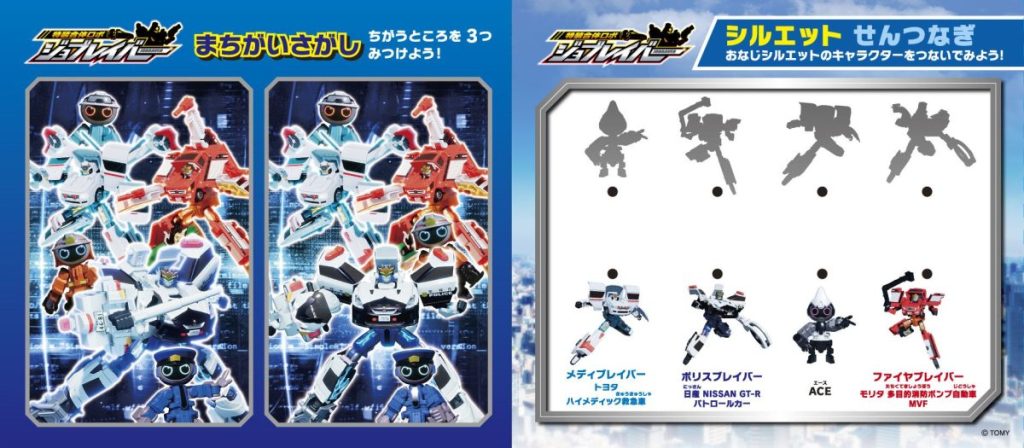 のりもの情報キッズバラエティ番組『トミプラワールド のりのりタイムズ!!』、大人気のアニメ・玩具シリーズ『特装合体ロボ ジョブレイバー』、番組内で4月から特別再編集版を放送開始する『新幹線変形ロボ シンカリオン』(ジョブレイバー・プラレールシンカリオン発売元:株式会社タカラトミー)の世界観が楽しめるシールブック全3種です。めいろ、間違い探しなどのゲームと、貼ってシール遊びができます。