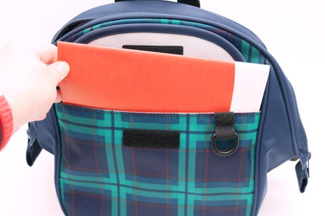 前面にはA5サイズの冊子が楽々入るポケットがあるので、園の出席帳や保育園の連絡帳などを入れることができます。