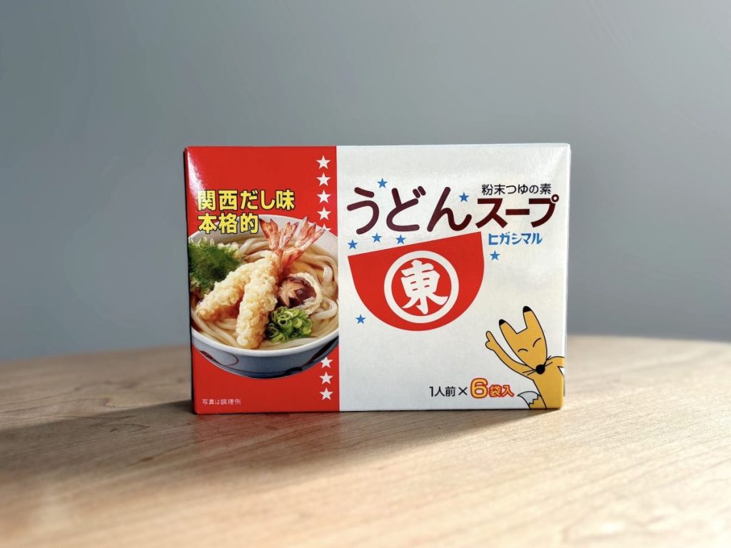 関西出身の方にはおなじみ、『ヒガシマル醤油』の粉末つゆの素「うどんスープ」。北海道産真昆布のうま味とかつお節のコクをふんだんにきかせ、本醸造淡口しょうゆで仕上げた、本格的な関西風うどんだしです。