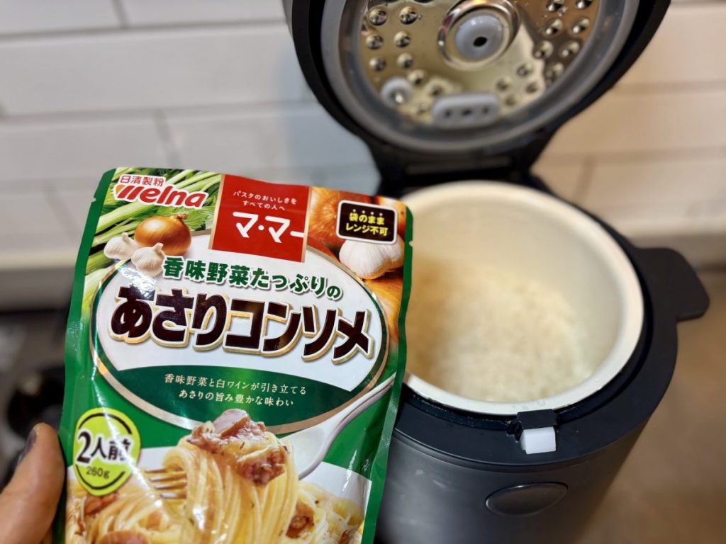 『マ・マー 香味野菜たっぷりのあさりコンソメ』は、SNSでバズっていた“炊飯器で米2合と炊くだけ”レシピを見て買ってみました。剥きあさりがコロコロ入っているので、このソースだけでも十分美味しい炊き込みごはんができます。余裕があれば、家にあるにんじんを角切りにして入れたり、きのこを加えると満足度がアップ。おこげも美味しいです」(湯さん/子ども8歳)