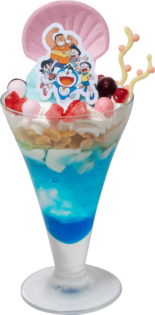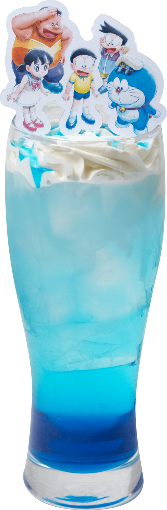 海面に立つドラえもんたちの印象的なシーンを再現したドリンク。鮮やかなブルーのソーダで、海底が広がる様子を表現しています。