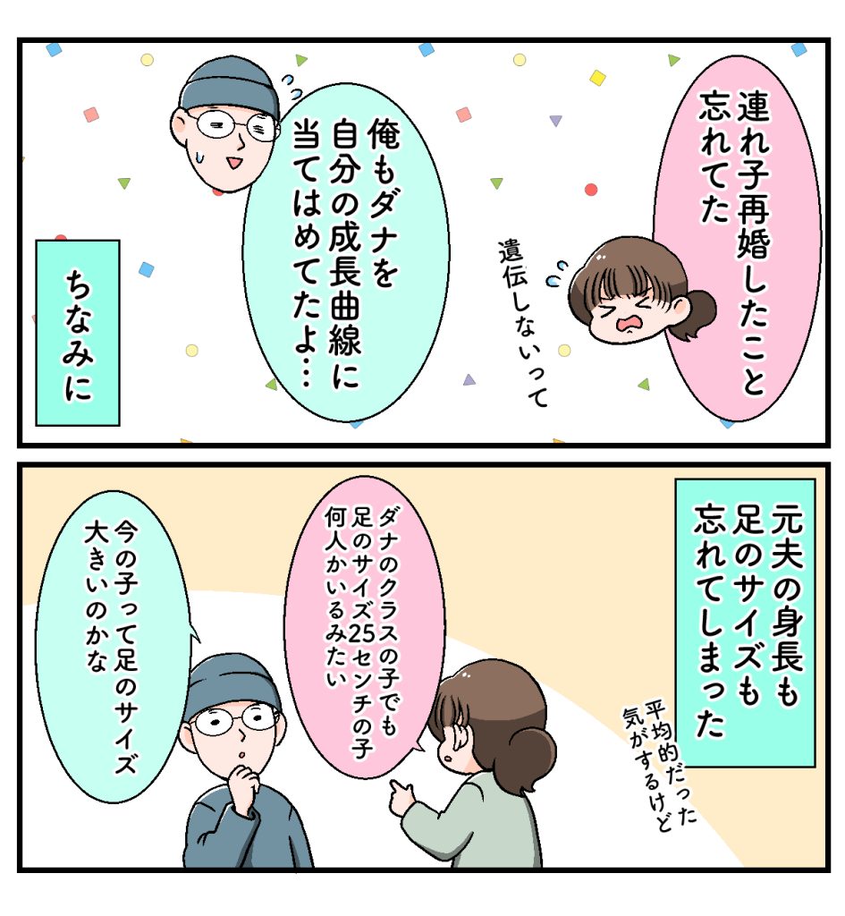 私と娘(連れ子)、再婚した夫と、再婚後に生まれた息子の4人家族の日常をマンガにしています。