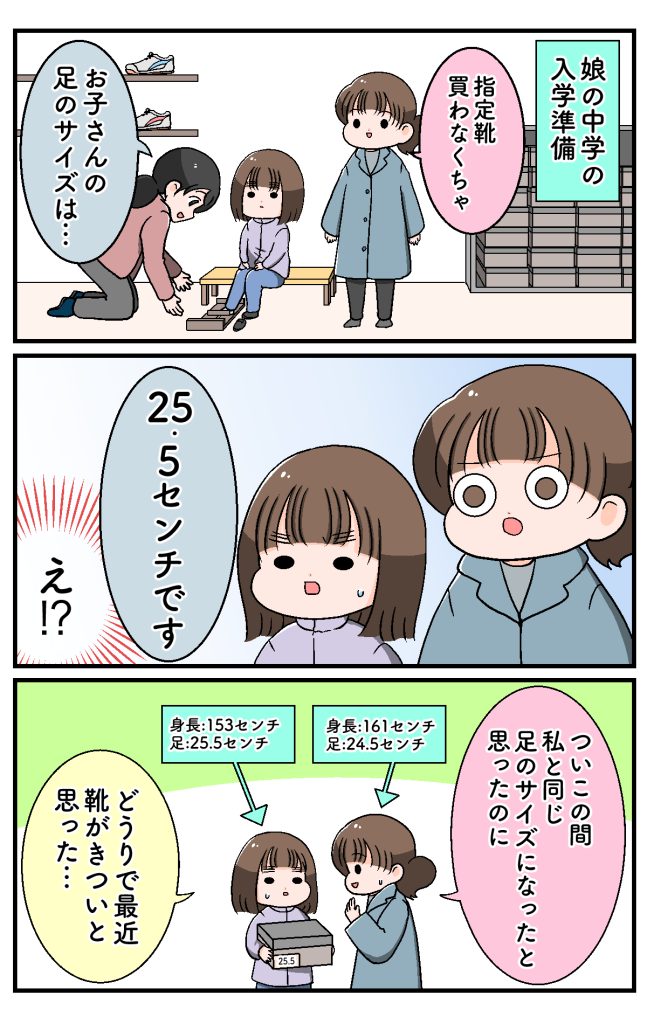 私は足のサイズが24.5センチで「足大きいね」と周りから言われていたので、娘の足のサイズに驚きました。