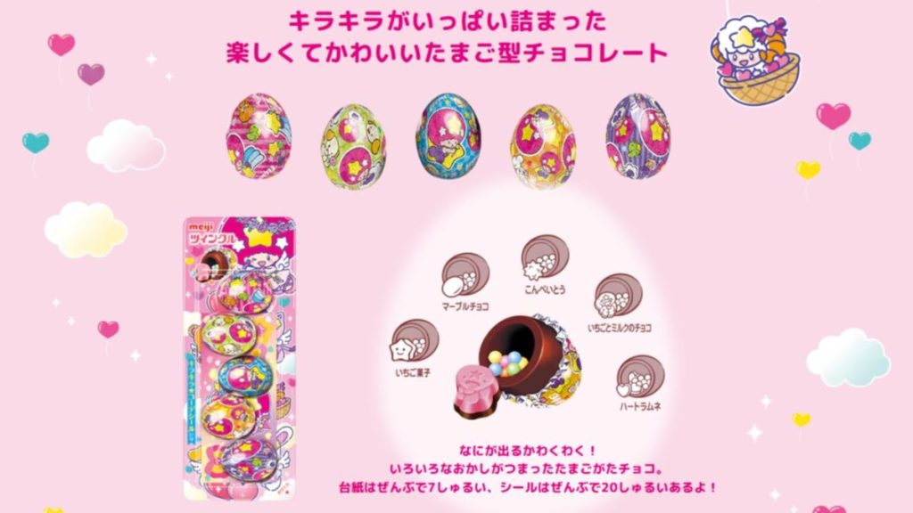 今年発売45周年を迎える、世代を問わず多くの人に愛されている明治の「ツインクル」。5色の銀紙に包まれた、かわいいたまご型のミルクチョコレートには、5種類のお菓子とカラフルなミンツが詰まっています♪