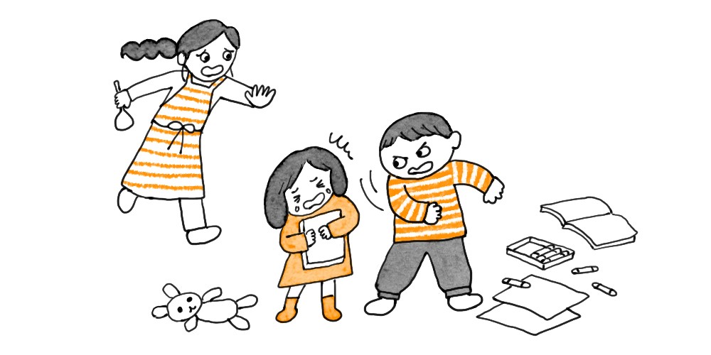 4歳の男の子と3歳の女の子の母です。どういうわけか、最近上の子が、妹に「あっちいけ」と言ったり、使っているおもちゃを妹がさわろうとすると「ダメ!」と言ったりと、強く当たるようになりました。たたいたりすることもあり、思わず「ダメでしょ!」と兄を叱ってしまうことも多くなっています。きょうだい仲良くしてほしいのに、どうしたらいいのでしょう