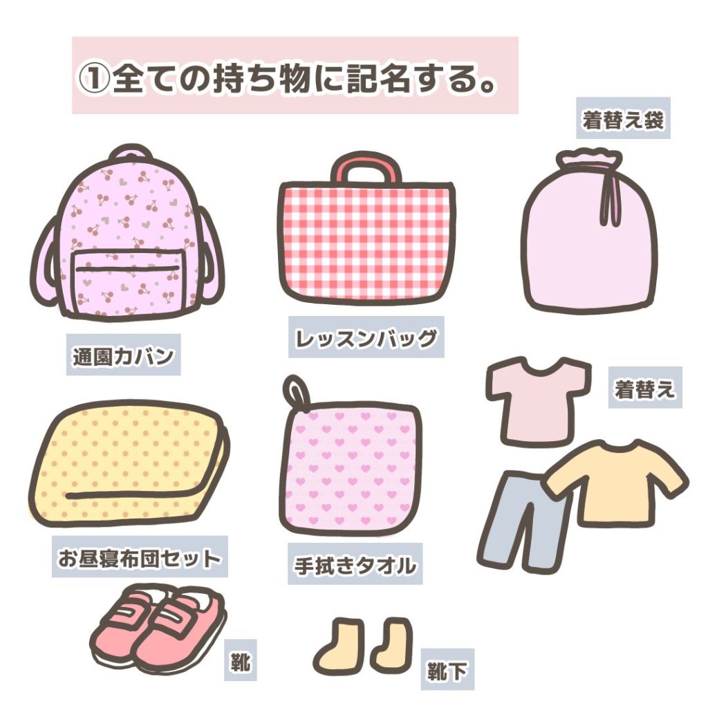 ※園によっては名前シールや名前スタンプが禁止のところもあるのでご注意ください。