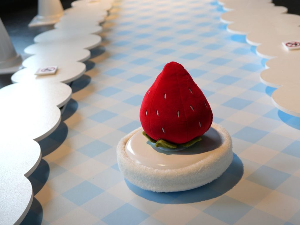 そんな“みるく”の気分になりきって楽しめるのがこちら! “いちごのストーン”をカーリングみたいにスーッと滑らせてトッピングできるアクティビティです。