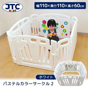 赤ちゃんがサークルを嫌がりにくくするためには、視界の抜けだけでなく「見た目のやわらかさ」もポイント。JTCのパステルカラーサークル2は、淡い色合いで空間になじみやすく、圧迫感を感じにくいデザインが特徴です。パネルには適度な抜けがあり、外の様子を感じやすい構造になっています。