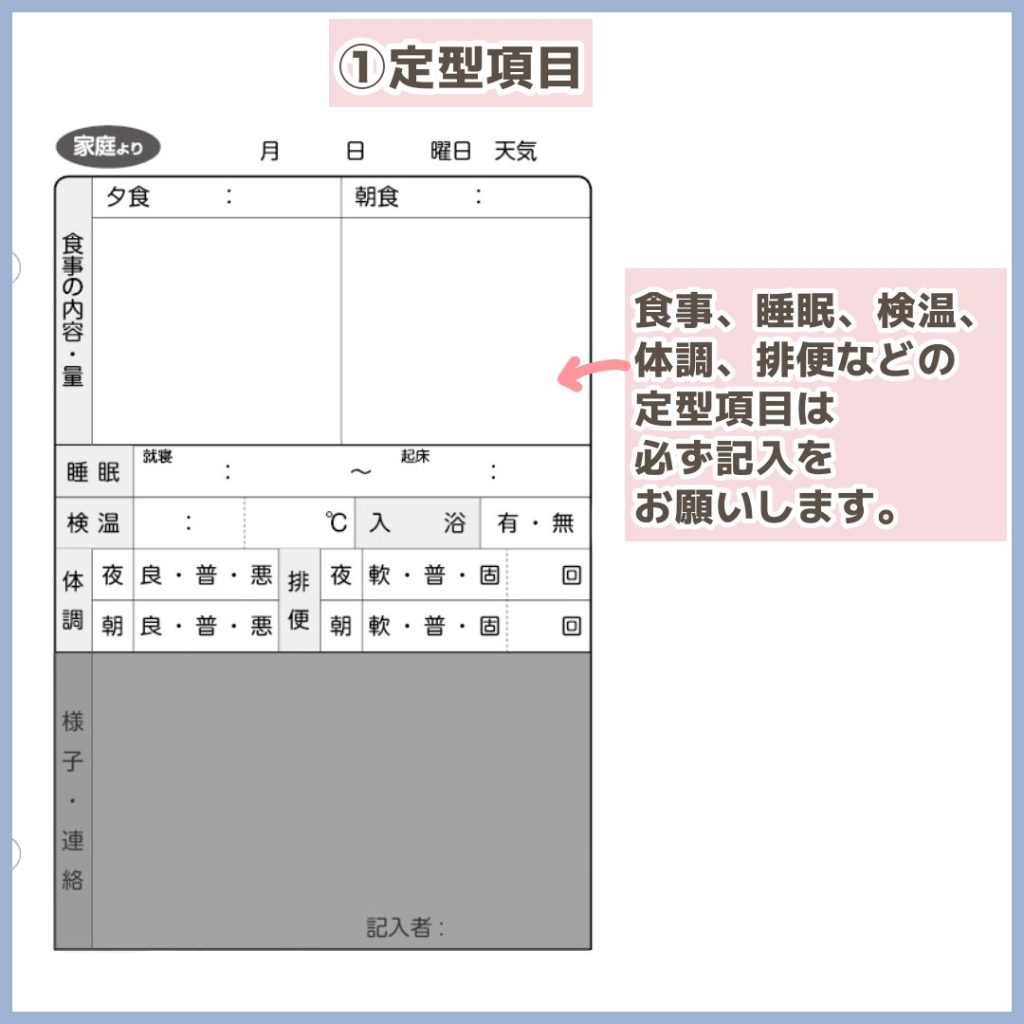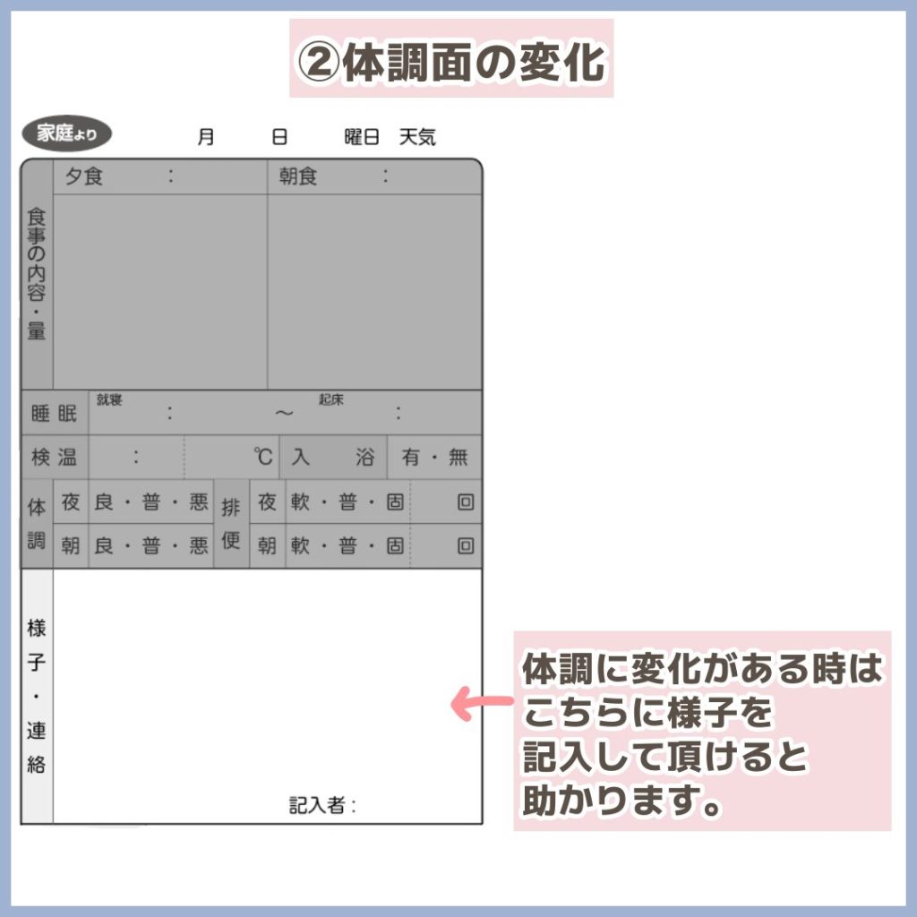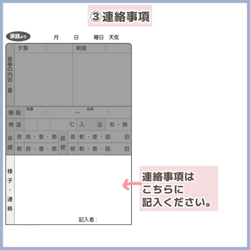 連絡帳にも記入していただけると