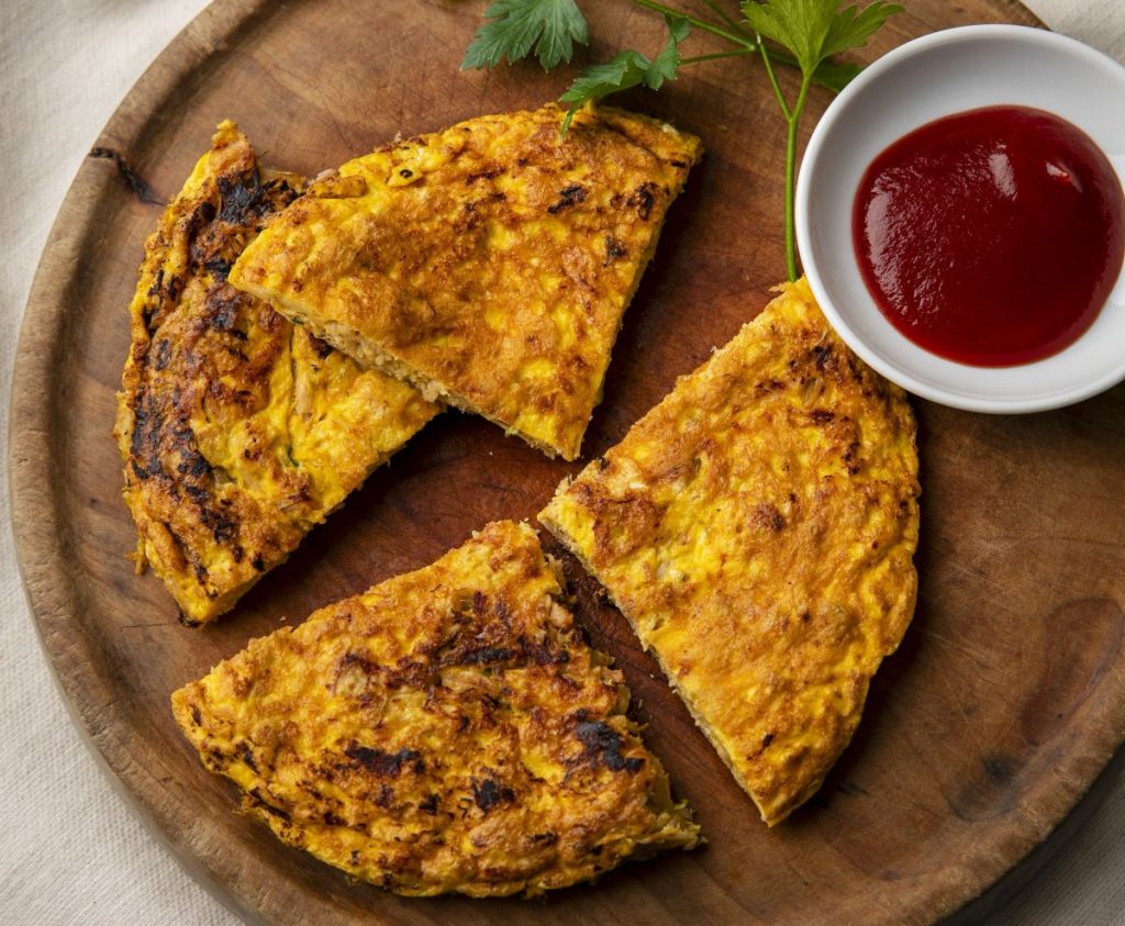 • 3.ツナを加えてさっと炒め、卵を回し入れ、フタをして弱めの中火で2分蒸し焼きにしたら、上下を返して2分焼く。器に盛り、お好みでケチャップをつけていただく。
