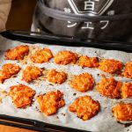 ニンジンを電子レンジでやわらかくして、コップの底でエイッとつぶす……、こんな調理法を考えつくアキオさんに脱帽です。お子さんが喜んで手伝ってくれそうです。チーズを多めに振って焼くとクリスピー感が増しますが、カリカリしすぎなくてもおいしい!
