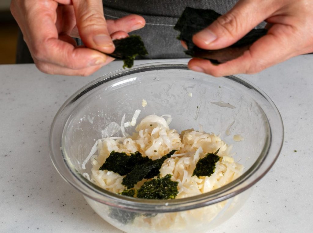 せん切りダイコンでシャキシャキともちもちのハーモニー