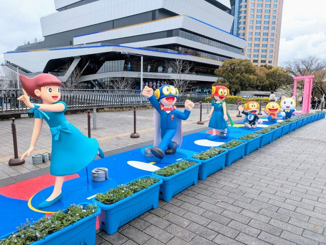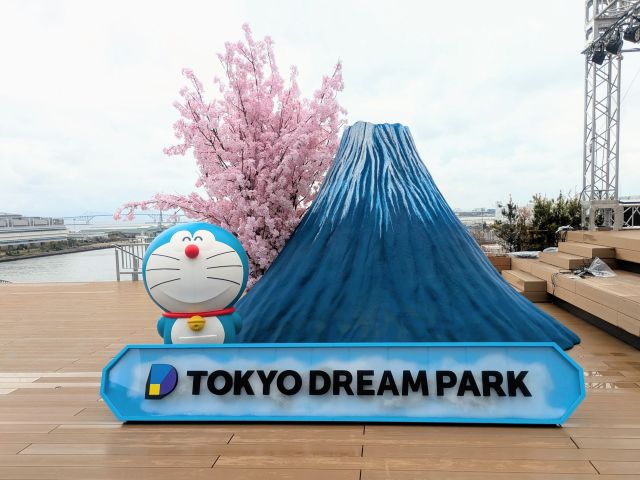 東京ドリームパーク内のテラスエリアでは、さまざまなポーズの等身大ドラえもんに出会えるほか、写真を楽しめるスポットが広がっています。有料エリアに加えて、無料で楽しめるエリアも用意されているため、気軽に立ち寄れるのもうれしいポイントです。