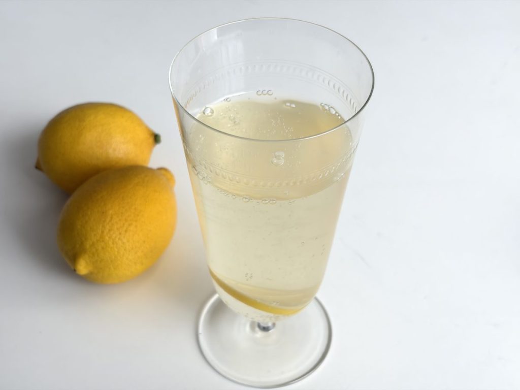 炭酸水200mlに、レモン1/4を搾り入れてみて。お好みで蜂蜜を加えてもいいでしょう。