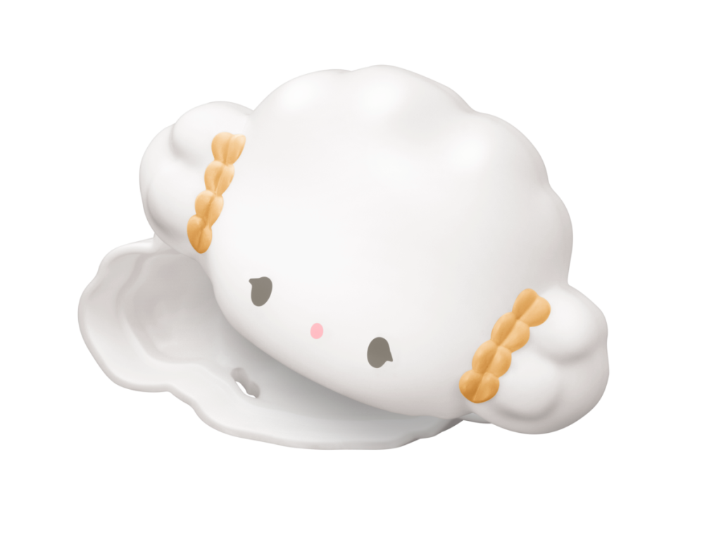 立体フィギュア型の小物入れです。スイーツ部分を外すと小物入れとして使用できます。ケースの中にはお友だちの“みるく”のカトラリー置きが入っています。