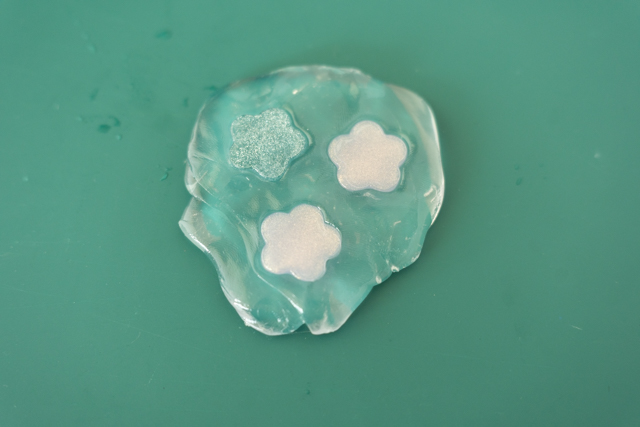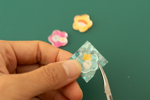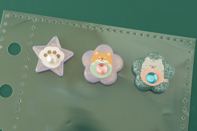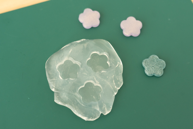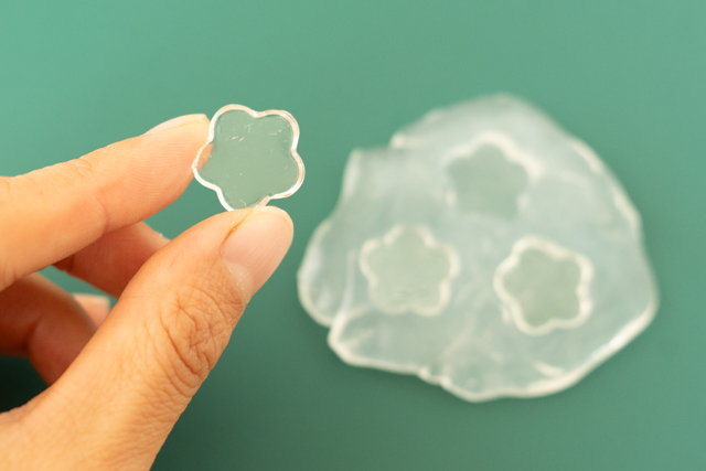 7. 硬化できたら型から取り出しましょう。デコレーションシールと同じ形の、透明なおはじきができました!