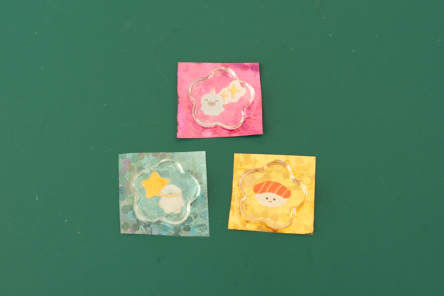 この方法では、レジンで好きなだけおはじきを作ることができ、また背景とシールの組み合わせも無限大なので、オリジナルのおはじきシールを量産することができます。
