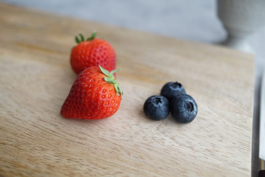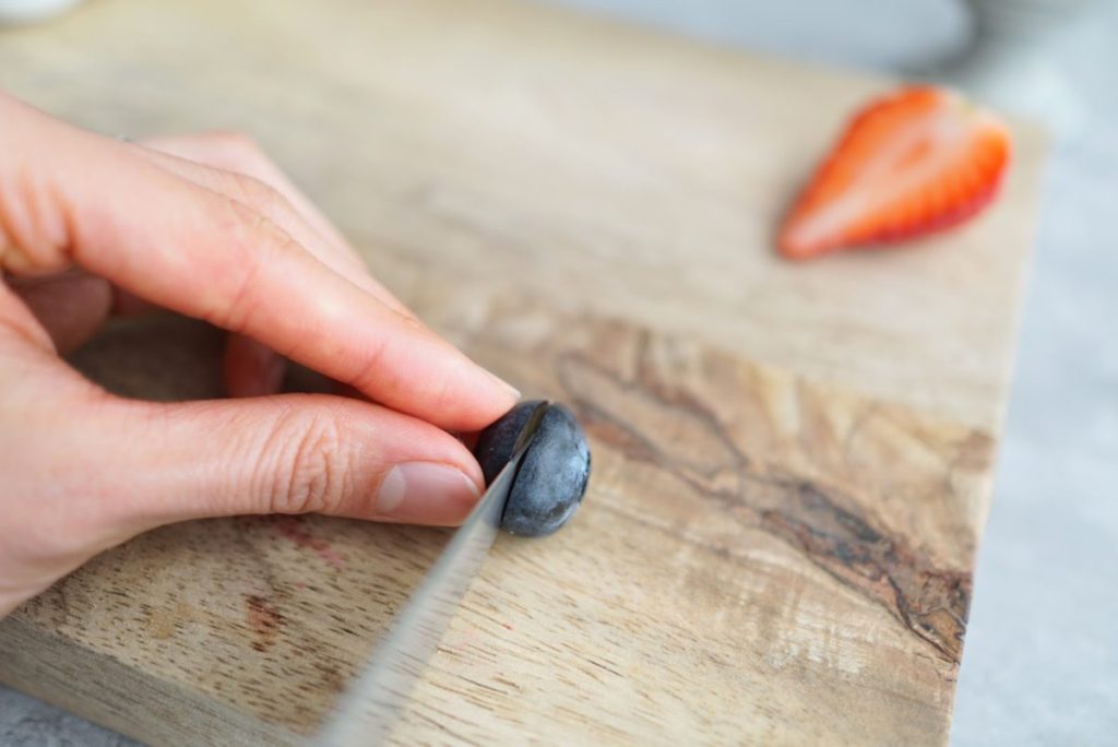 5. ブルーベリーを半分に切ります。