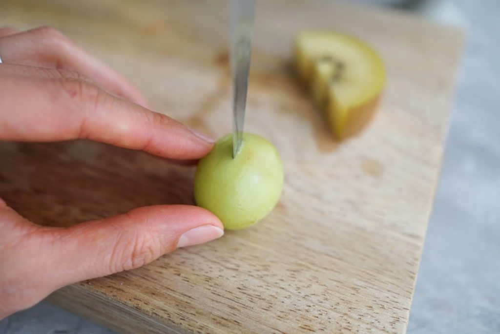 1. まずは、キウイを輪切りにします。