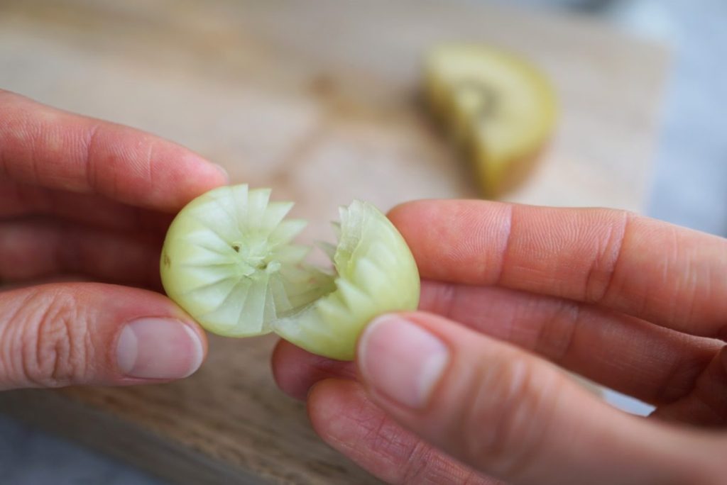3. ヘタの部分を、V字にカットします