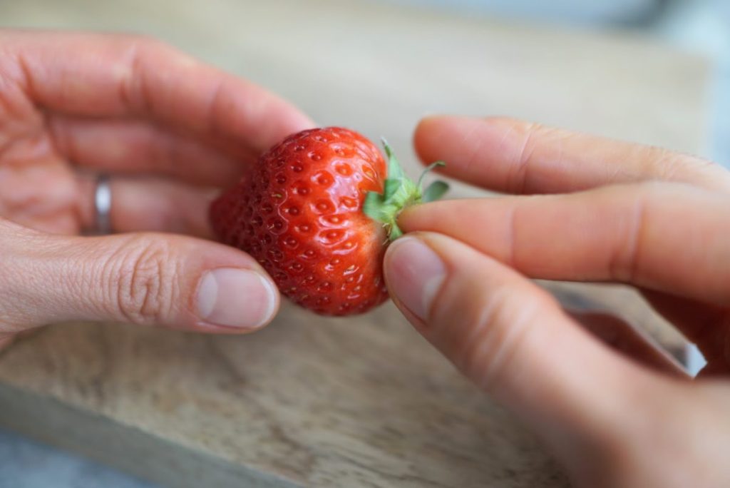 いちごの「肩」を使いたいので、包丁では切りません