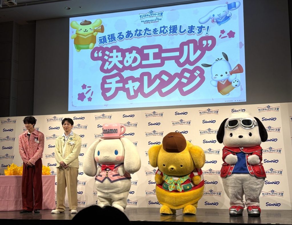 続いて、昨年のサンリオキャラクター大賞トップ3「ポムポムプリン」「シナモロール」「ポチャッコ」がステージに登場。