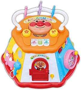 ドリーミングが歌う2曲:アンパンマンのマーチ・サンサンたいそうと童謡3曲:おおきなくりの木の下で・むすんでひらいて・あたまかたひざぽんなど全5曲を収録した多面ボックス。大きな7つの面に音や光、28種の遊びが詰まって長く遊べます。