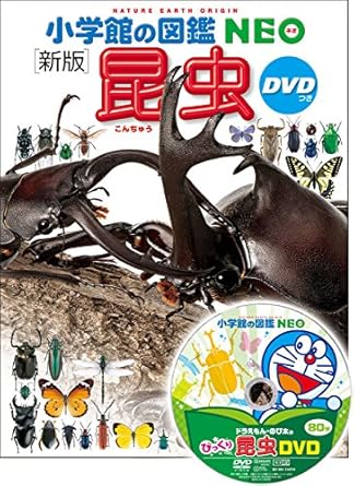 小学館の図鑑NEOシリーズは、ドラえもんと一緒に学べるDVDつきで子どもの興味を引く作りになっています。美しい標本写真、生態写真、大きさが把握しやすい拡大率など、最新の情報が盛り込まれています。