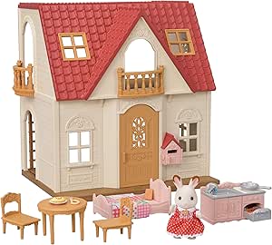 お家とショコラウサギの女の子の人形、さらに基本的な家具がすべて揃っているセットで、すぐ遊び始めることができます。キッチンには、アップルパイを焼けるオーブンや水が出る蛇口など楽しいしかけも満載。遊びながら自然とごっこ遊びの世界が広がります。