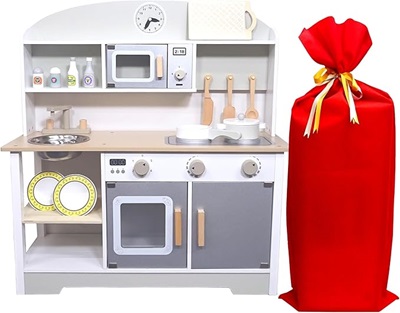・キッチンセット 野菜や包丁のおままごとセットに興味を持っていたので、キッチンセットも興味を持つかなと思った。コンロが光ったり音楽がなったり仕掛けが多く、飽きずに遊んでいる。 (30代・長崎県・子ども1人)